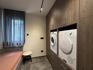 В квартире две спальни и главная спальня с гардеробной, а также дополнительная комната, которая в настоящее время используется как прачечная, но может быть легко переоборудована в кабинет или ещё одну спальню.